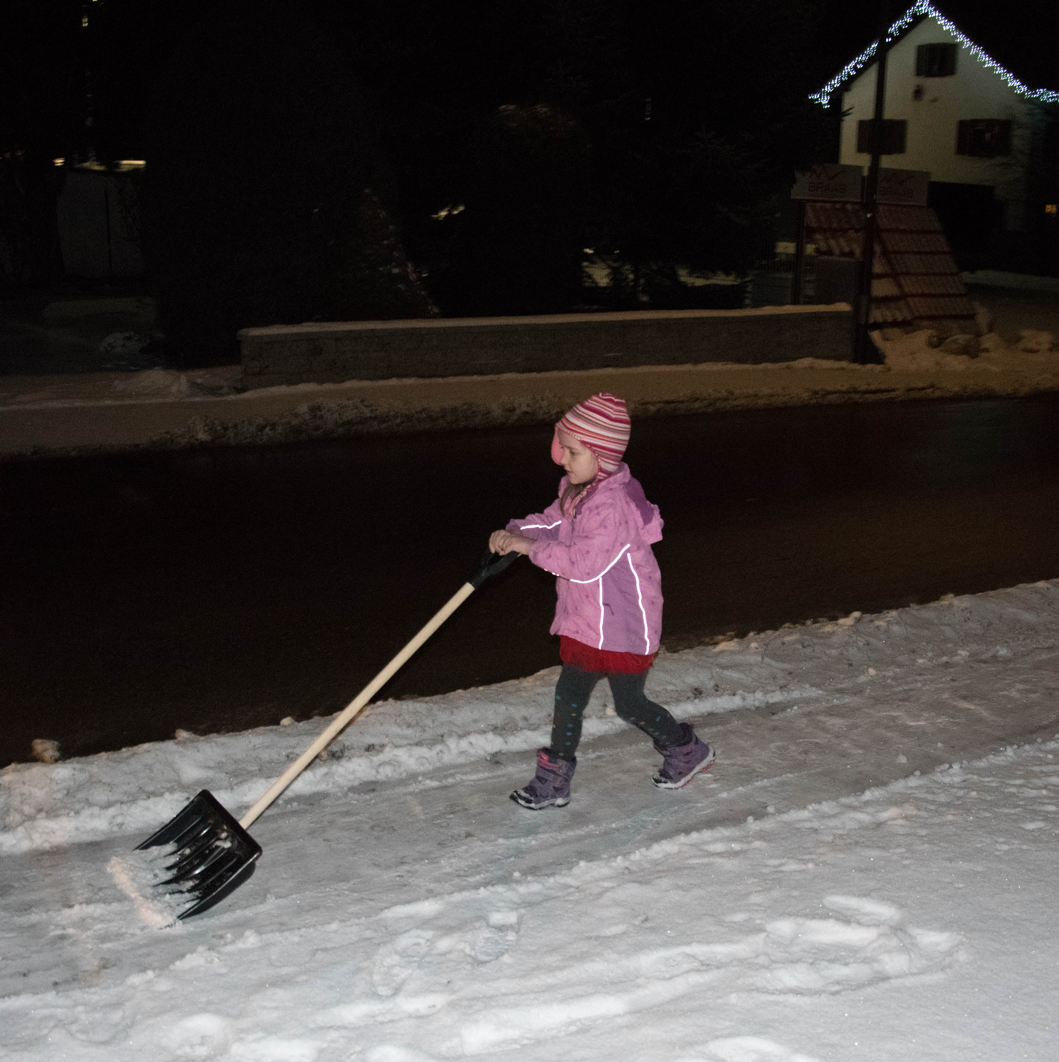 Shoveling the snow.